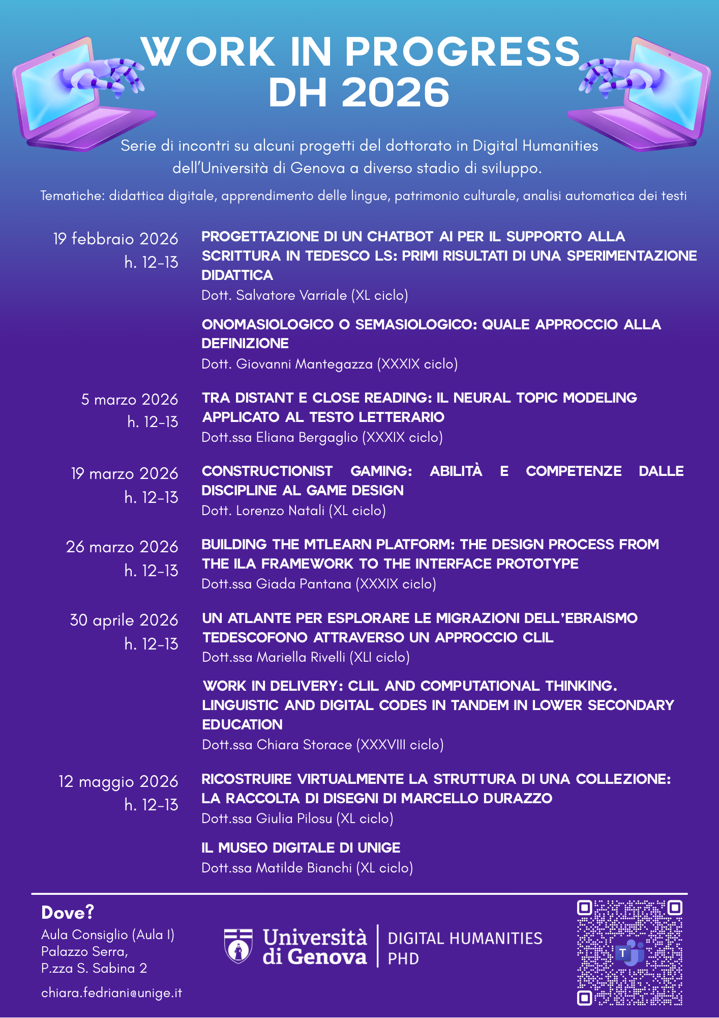 Cicli di incontri organizzati da dottorande e dottorandi di Digital Humanities